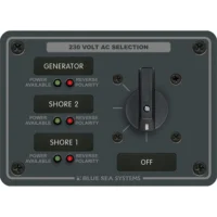 Blue Sea 8357 AC Rotary Switch Panel 65 Ampere 2 Position + OFF, 2 Pole
