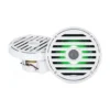 The ELITE 6.5″ Speakers in black represent the best in classically-styled marine speakers with customizable lighting. With 240 Watts of total power and LED cone illumination, there is no need to compromise style for great audio quality with these speakers. These speakers are designed with a classic grill, making them an excellent fit for a myriad of environments. Fully waterproof in addition to being UV/salt/fog resistant, these speakers are an excellent choice for boats and other marine environments, even those where high background noise may pose a problem for other less powerful speakers.