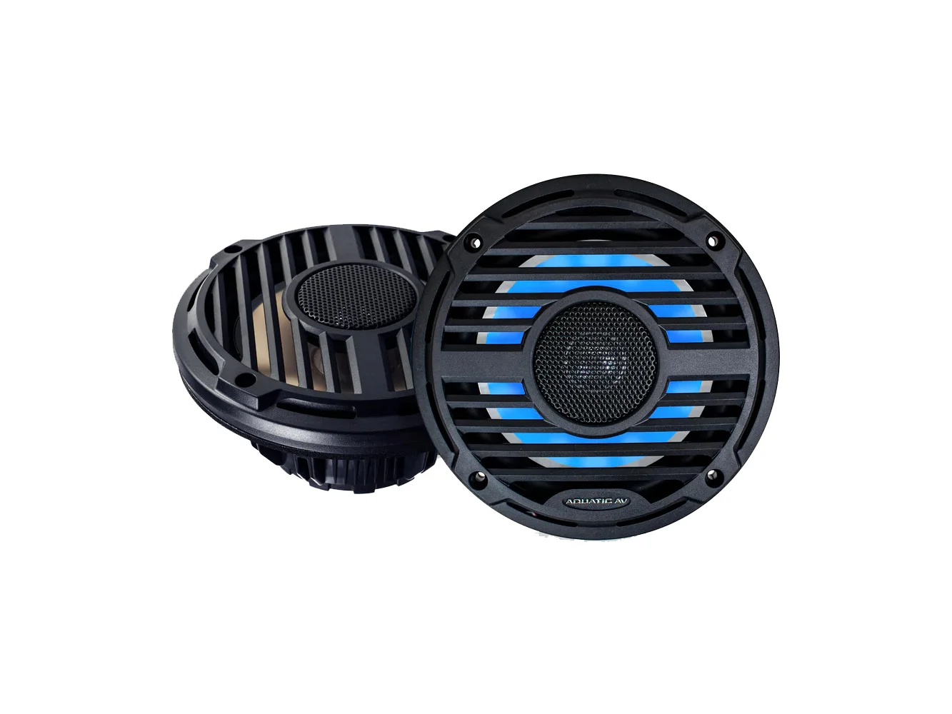 Looking for high-quality sound with a classy, modern aesthetic? The PRO Classic 6.5” Speakers in black featuring a traditional grill-style, customizable lighting via the RGB Controller, and our Aquatic AV logo badge boast 120 watts total power and RGB cone illumination so your sound can be as potent as the experience is fun. Built for durability, these multi-environment speakers are fully waterproof as well as UV/salt/fog resistant to ensure they last as long as possible. If you’re looking for high-quality sound and an immersive entertainment experience, look no further than the PRO Classic 6.5″. Pair with the PRO Classic 10″ Subwoofer for the ultimate audio experience.