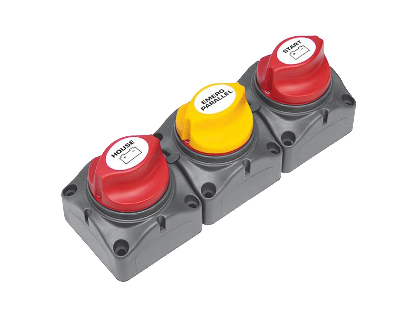 Horizontal unit to be used in single outboard with a dual battery bank, single alternator with a dual battery bank or in a twin alternator with a dual battery bank.