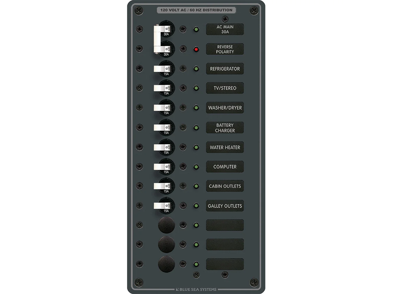 - “ON” indicating LEDs installed in all circuit positions