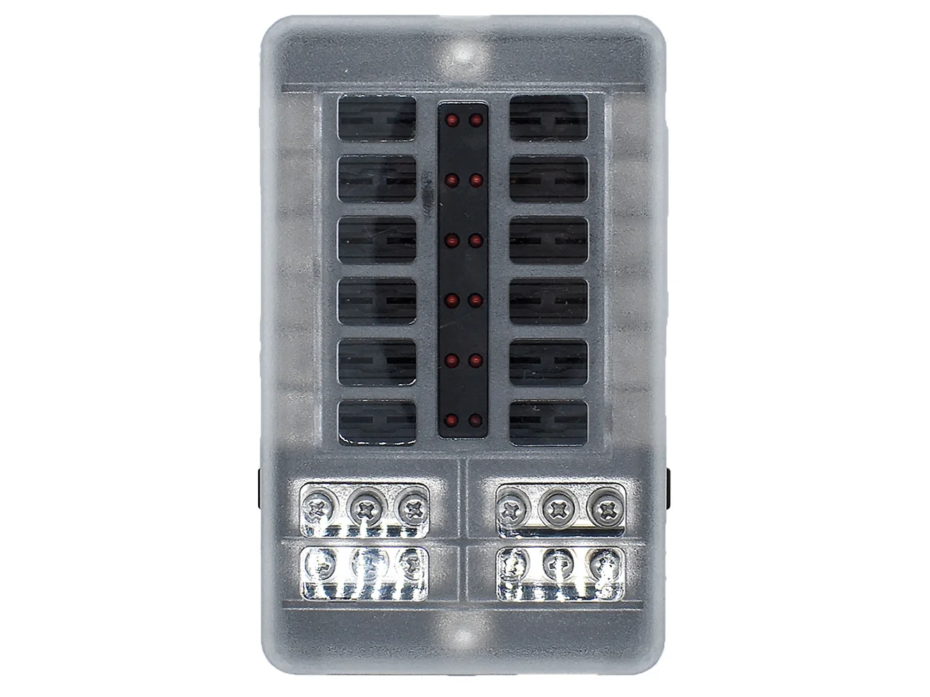 This 12-position led fuse block is built to simplify circuit protection and troubleshooting in 48V DC systems. Each circuit supports up to 30A, and an integrated LED indicator alerts you the moment a fuse blows—so you can identify and address issues at a glance.