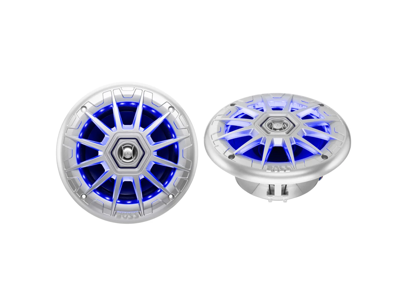 Boss Audio 6.5" MRGB65S Speakers w/RGB Lighting - Silver - 200WBoss Audio 6.5″ MRGB65S Speakers w/RGB Lighting – Silver – 200W
