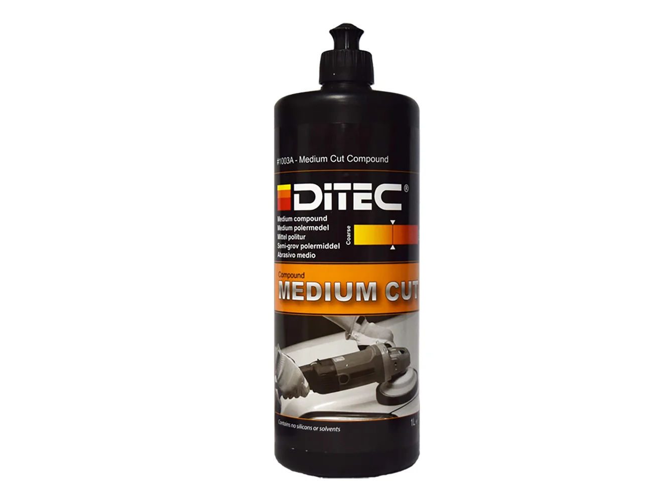 DiTEC Medium Cut Polishing Compound is a one-step sanding and high-gloss polish that removes P3000 grit marks and fine scratches in a single pass. Its unique abrasive grain continuously refines for a flawless, hologram-free finish. Safe for all paint systems, including scratch-resistant ones. Silicone and solvent-free.