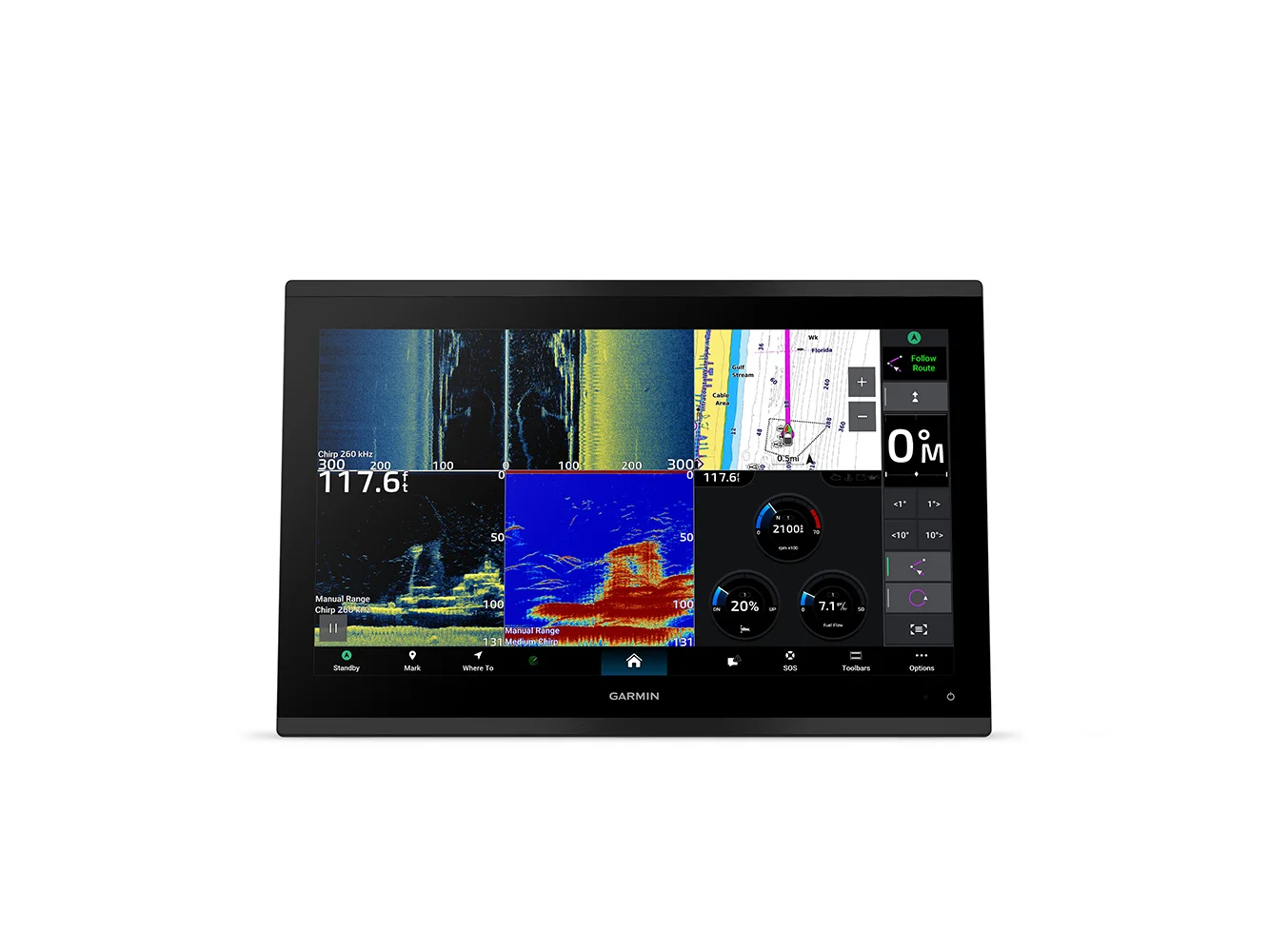 - Premium Charts: Get support for Garmin Navionics Vision+™ charts with premium relief shading and satellite imagery.