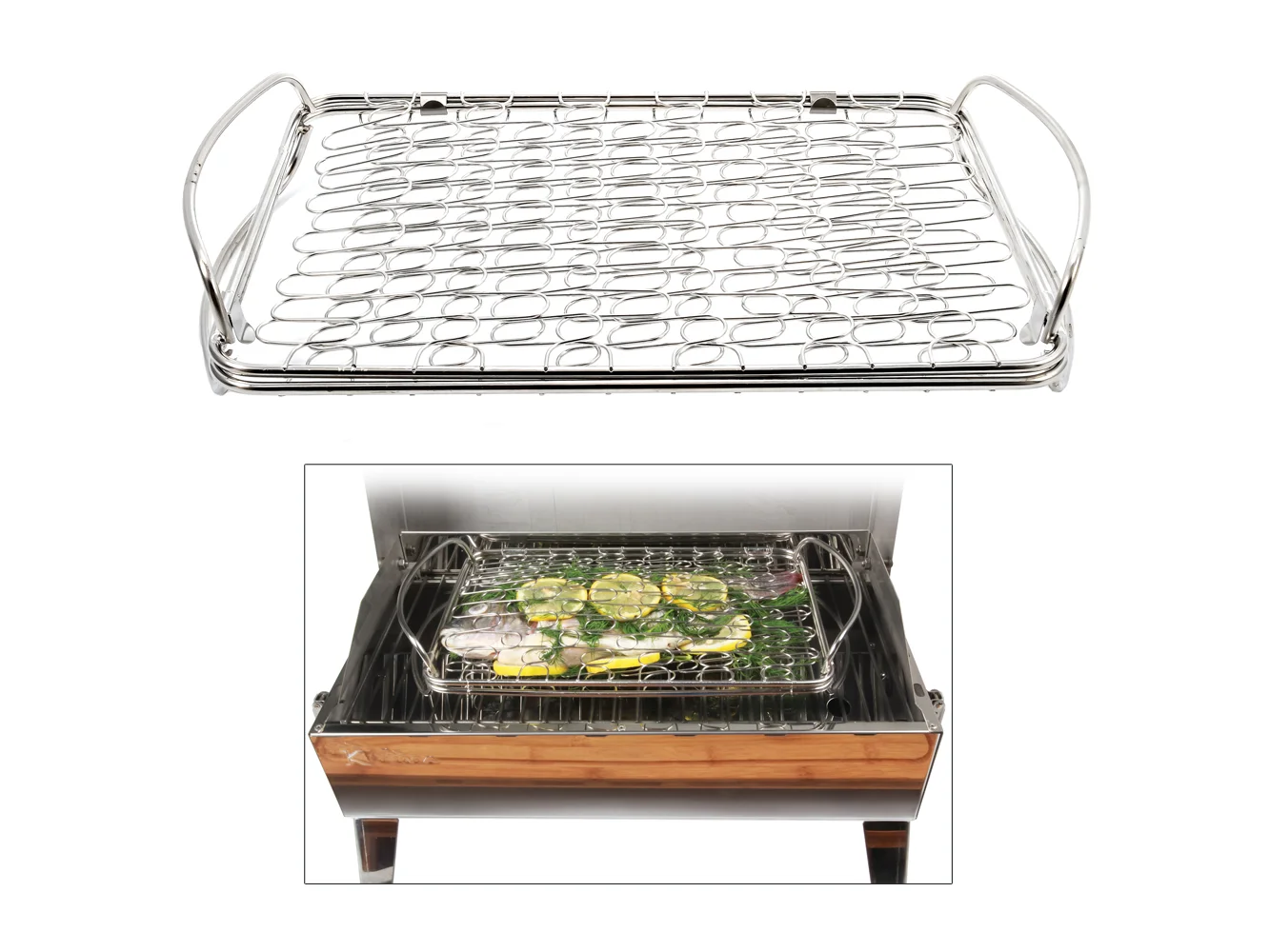 A Stainless Steel basket used for preventing delicate foods from flaking and falling apart and holds a variety of food sizes and shapes.