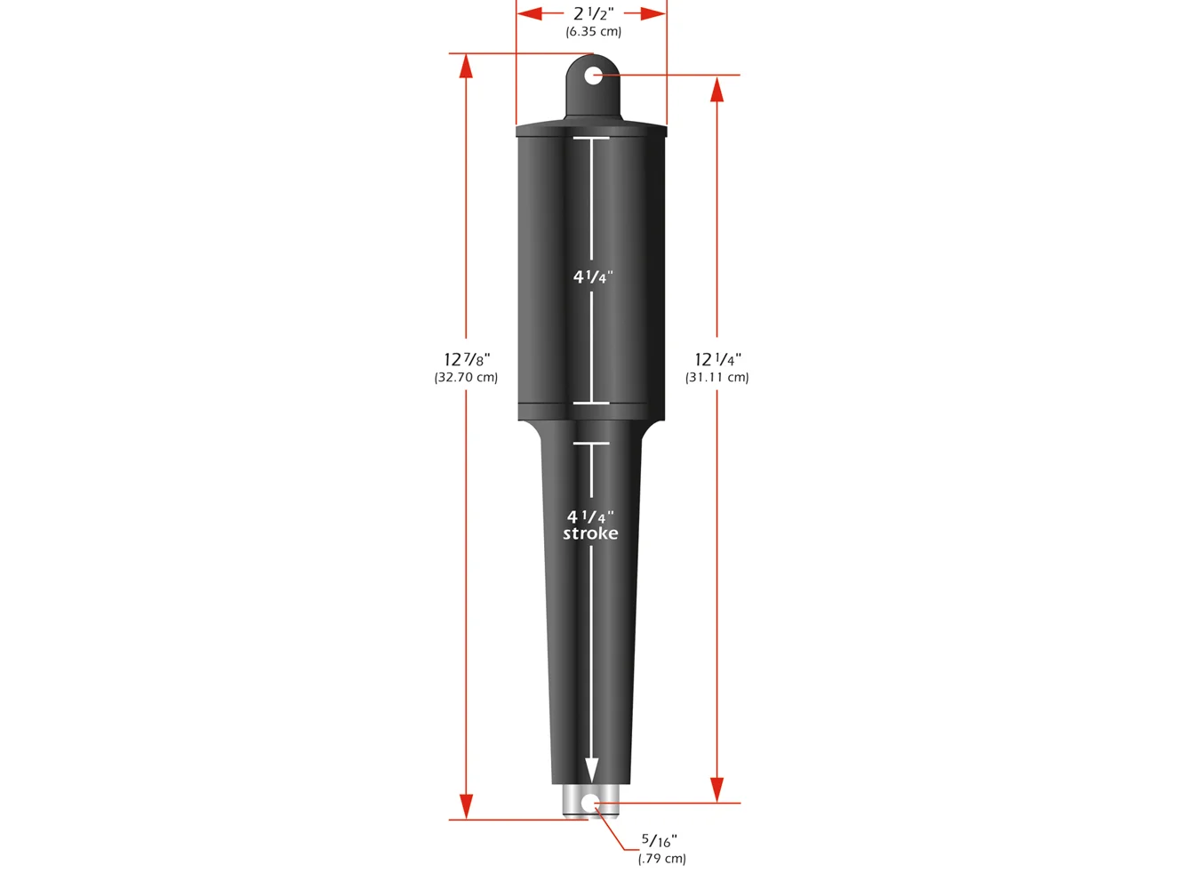 The 102 XD Actuator is used with Trolling Tab systems sold after 2000 and OEM applications. 4.25 stroke. Overall length (tip to tip) is 13 inches. Instant response electric actuators are made of high impact glass fiber filled, ultraviolet-resistant nylon material with 316 super buff stainless steel tubing.
