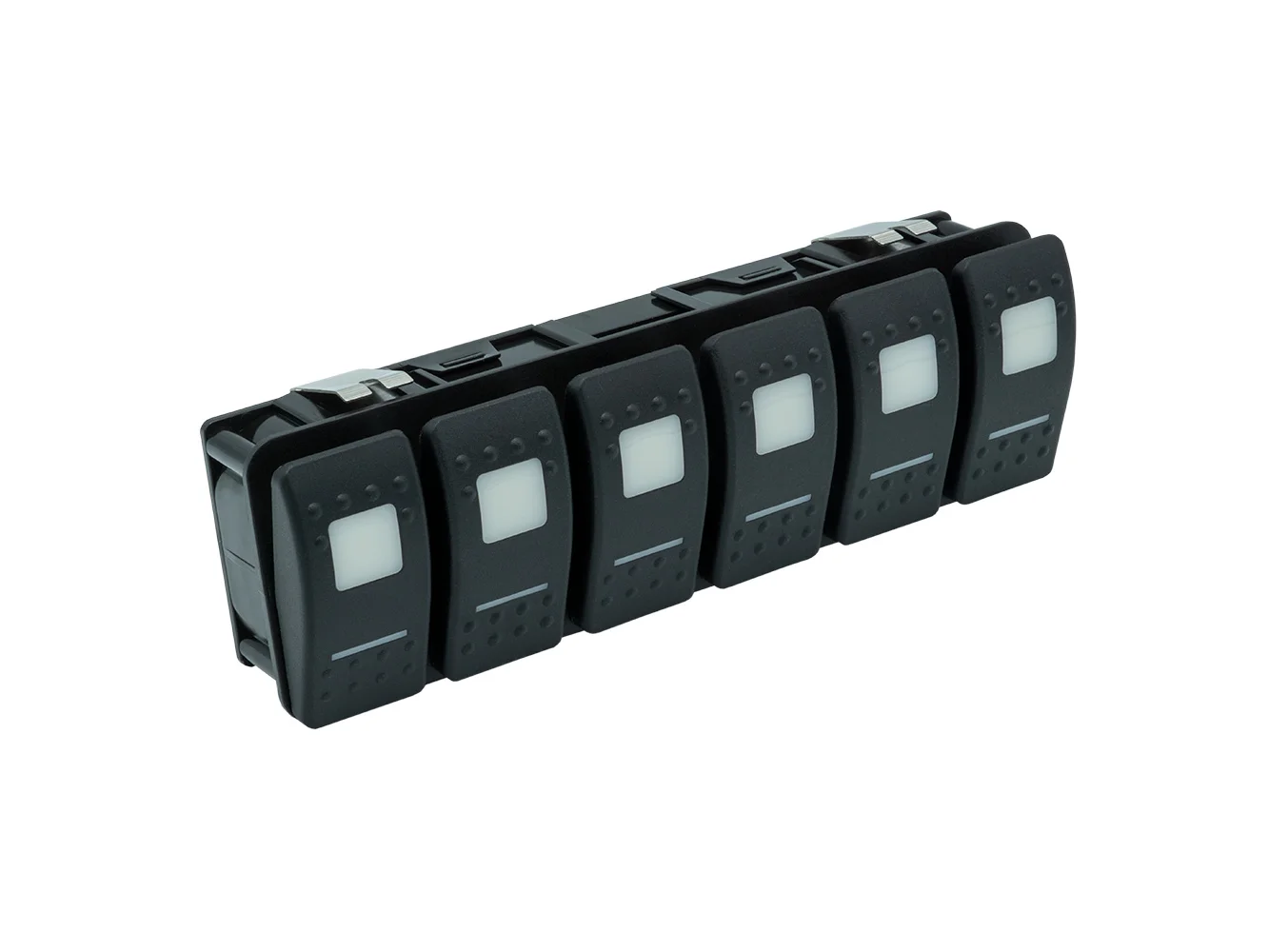 The VMM-Series is a sealed multiplexed, digital switch module featuring the Carling V-Series Contura® rocker switches. Well known for their cutting-edge design, high quality, maximum performance, and unmatched reliability, the VMM-Series reduces the complexity and cost of traditional wiring harnesses, increases product life and reliability, and reduces installation time. Available in six simple configurations, VMM6 is a plug-and-play solution that delivers switching technology at a very attractive price point.