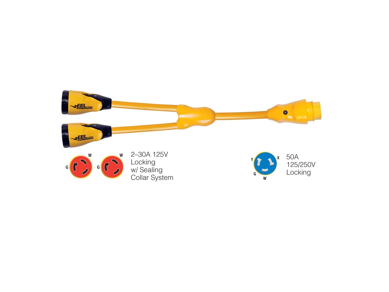 Marinco Y504-2-30 EEL (2)-30A-125V Female to (1)50A-125/250V Male “Y” Adapter – Yellow