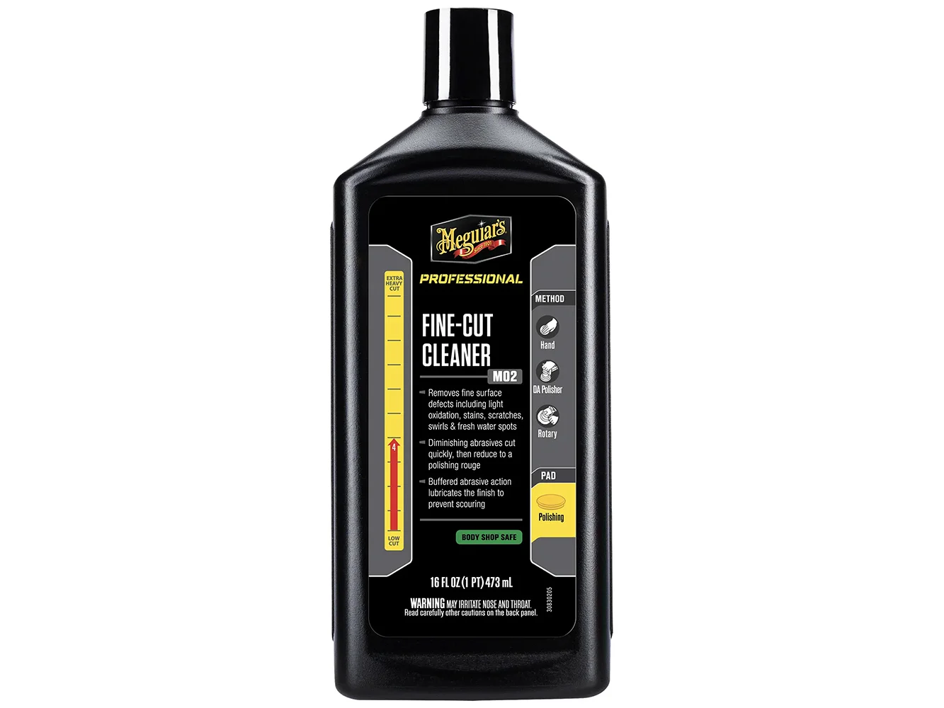Meguiar's Mirror Glaze #2 Fine-Cut Cleaner is a mildly abrasive cleaner that removes fine surface defects, including light oxidation, stains, scratches, swirls, and fresh water spots. Our special formula of buffered abrasives turns into a gentle buffing rouge, giving you a professional finish that's ready for polishing and protecting. Buffered abrasive action lubricates the finish to prevent scouring. This professional cleaner also leaves a silicone-free surface essential for proper painting in a body shop environment. Safe and effective on all glossy paint finishes, including clear coats, and ideal for older lacquer and enamel paints.