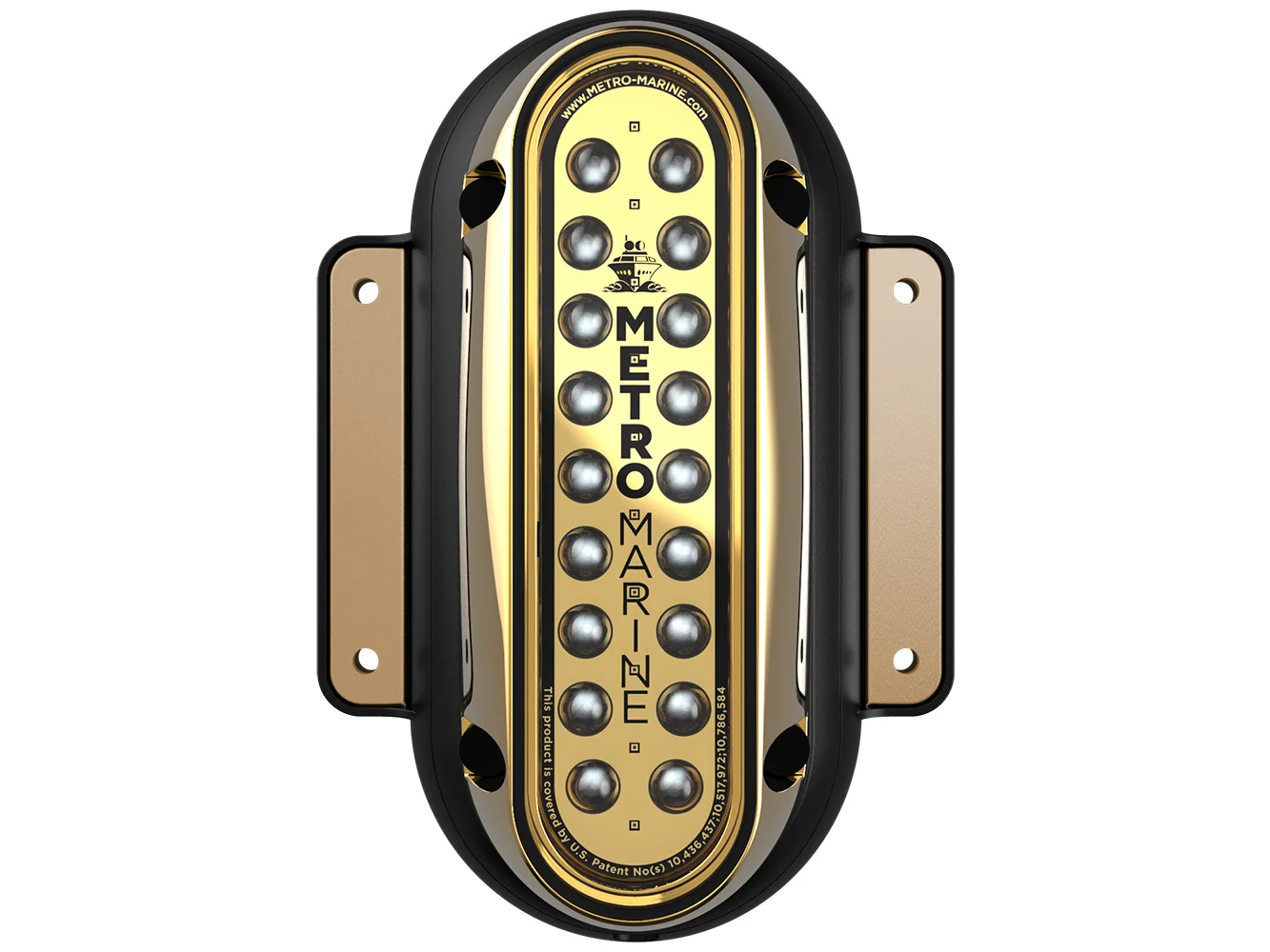 The F-Series line of underwater marine lighting fixtures is designed to mounted a depth of up to 4.6M (15′) below the water’s surface to provide vibrant Blue light in the water. With watertight aluminum bronze housings and silicon bronze hardware, Metro Marine’s F-Series luminaires are perfect for marine-based applications such as mounting to yachts, docks, sea walls, as well as for use in fountains and theme park installations. Leveraging Metro’s rich legacy of innovation and leadership in optics & LED control technology, the F-Series underwater lighting fixtures introduce a unique LED array to the market with 18 H.O. LEDs per fixture, allowing close adjacent fixture placement where fully-mixed, uniform light is important.