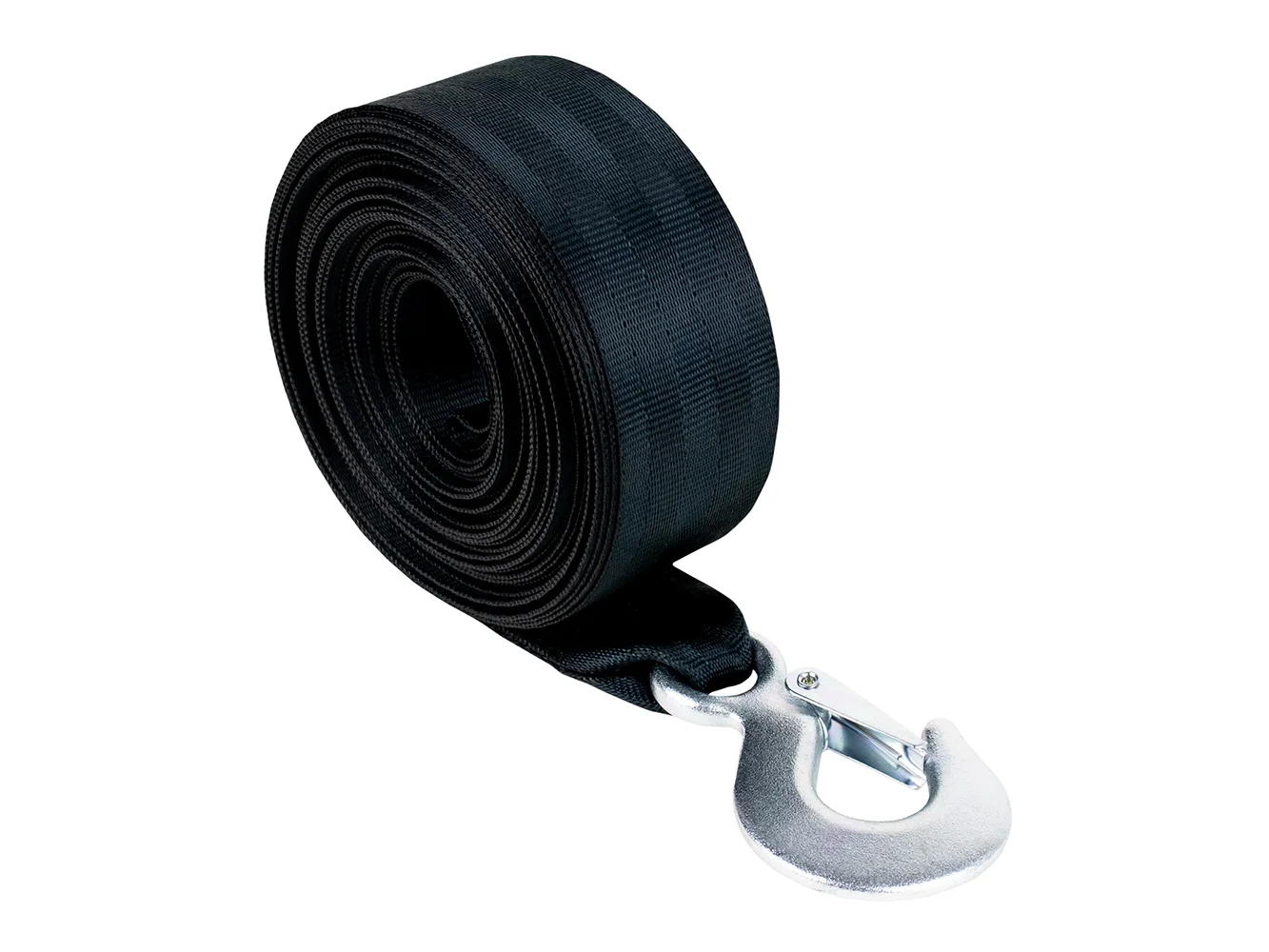 High-quality, 20' strap. 2" wide, four-panel webbing, polyester strap with forged snap hook.