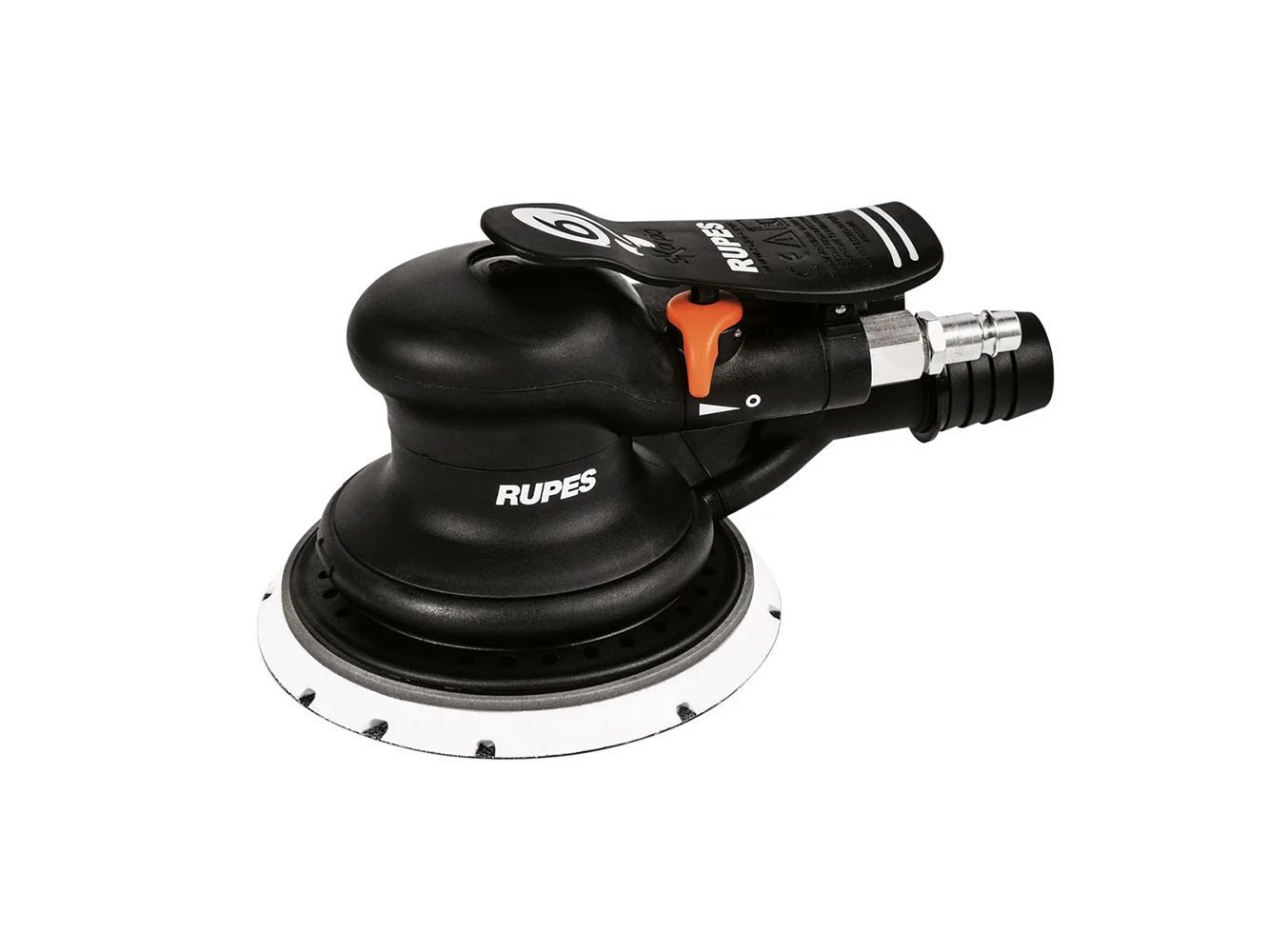 The Random orbital palm pneumatic sander with 125mm pad, Skorpio III, is what every random orbital sander operator needs, an extremely quiet tool that has tremendous power and low vibration. The newly designed pneumatic Skorpio III is the quietest random orbital sander in its class. Further, it comes in a choice of orbit sizes to fit your particular application. The body is coated with an anti-slip rubber for better handling, the throttle lever is designed to support the operator’s wrist during operation and actually fits perfectly into the tool body to eliminate “pinch points”, the internal balancing of the components results in extremely low vibration, and the double row bearings ensure greater life and smoother operation.