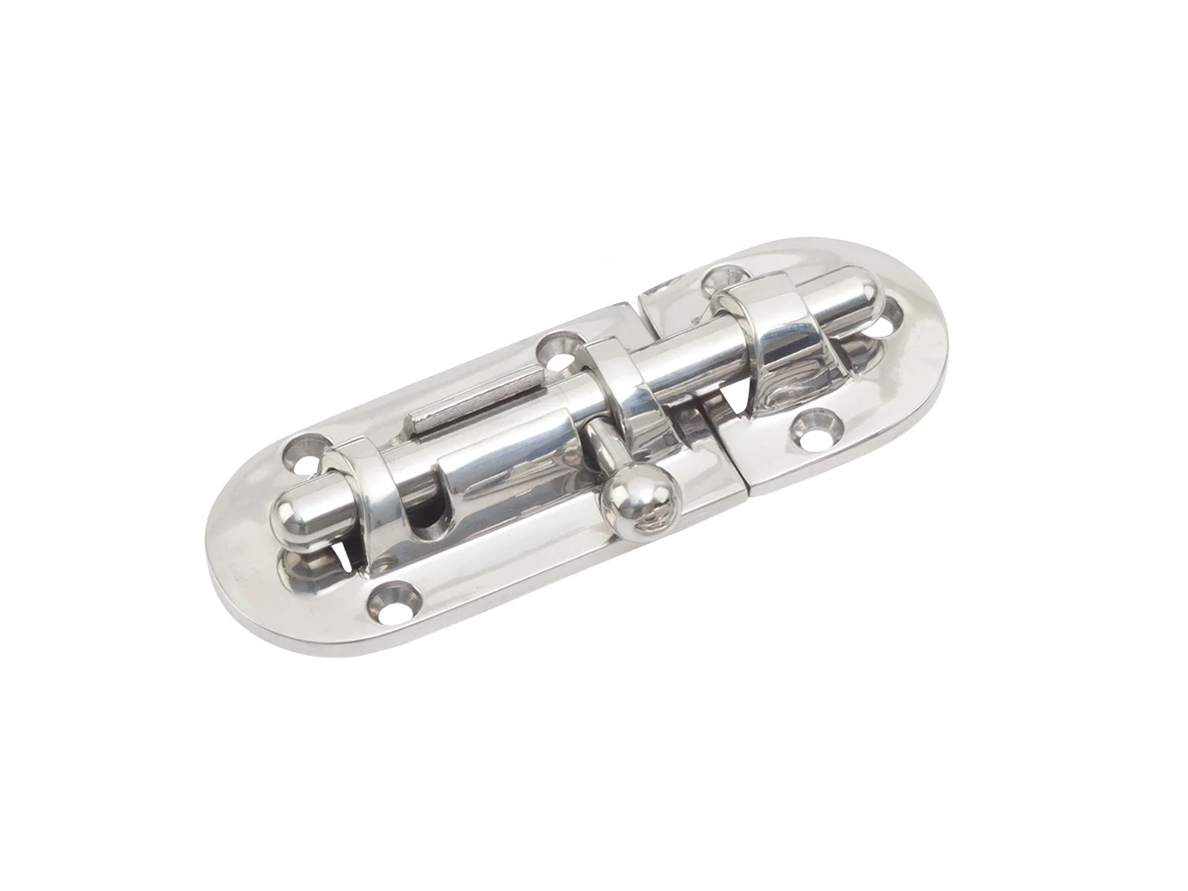 These Barrel Bolts provide additional security as either a primary or back-up locking system. Ideal for use on doors, gates, and cabinets. Appropriate for vertical, horizontal, left, or right-hand applications. In vertical use, the notch in the barrel holds bolt in locked position. Constructed of corrosion resistant investment cast 316 stainless steel. Surface mounts with FH fasteners (not included).