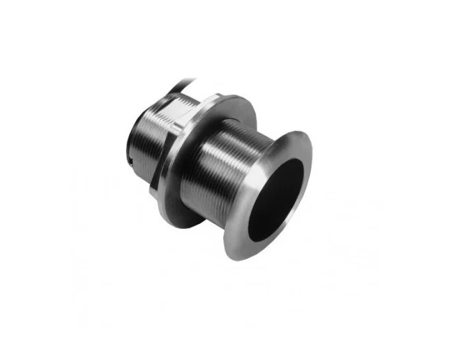 The SS60 is a stainless steel, thru-hull, tilted, dual-frequency, depth and temperature transducer. The ceramic element is tilted for built-in deadrise compensation, giving excellent echo returns for more accurate depth readings.