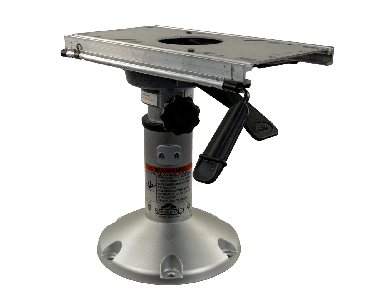 Package includes 2-3/8″ high-strength anodized aluminum air-powered height adjustment pedestal (500 newton cylinder) with 9″ round anodized base, and locking Trac-Lock™ swivel & slide.