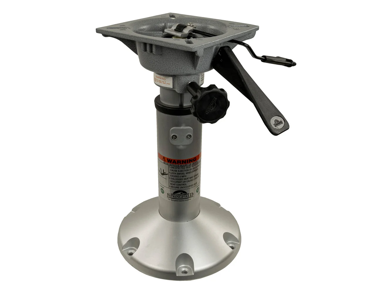 Package includes 2-3/8″ high-strength anodized aluminum air-powered height adjustment pedestal (500 newton cylinder) with 9″ round anodized base, and locking Trac-Lock™ swivel.