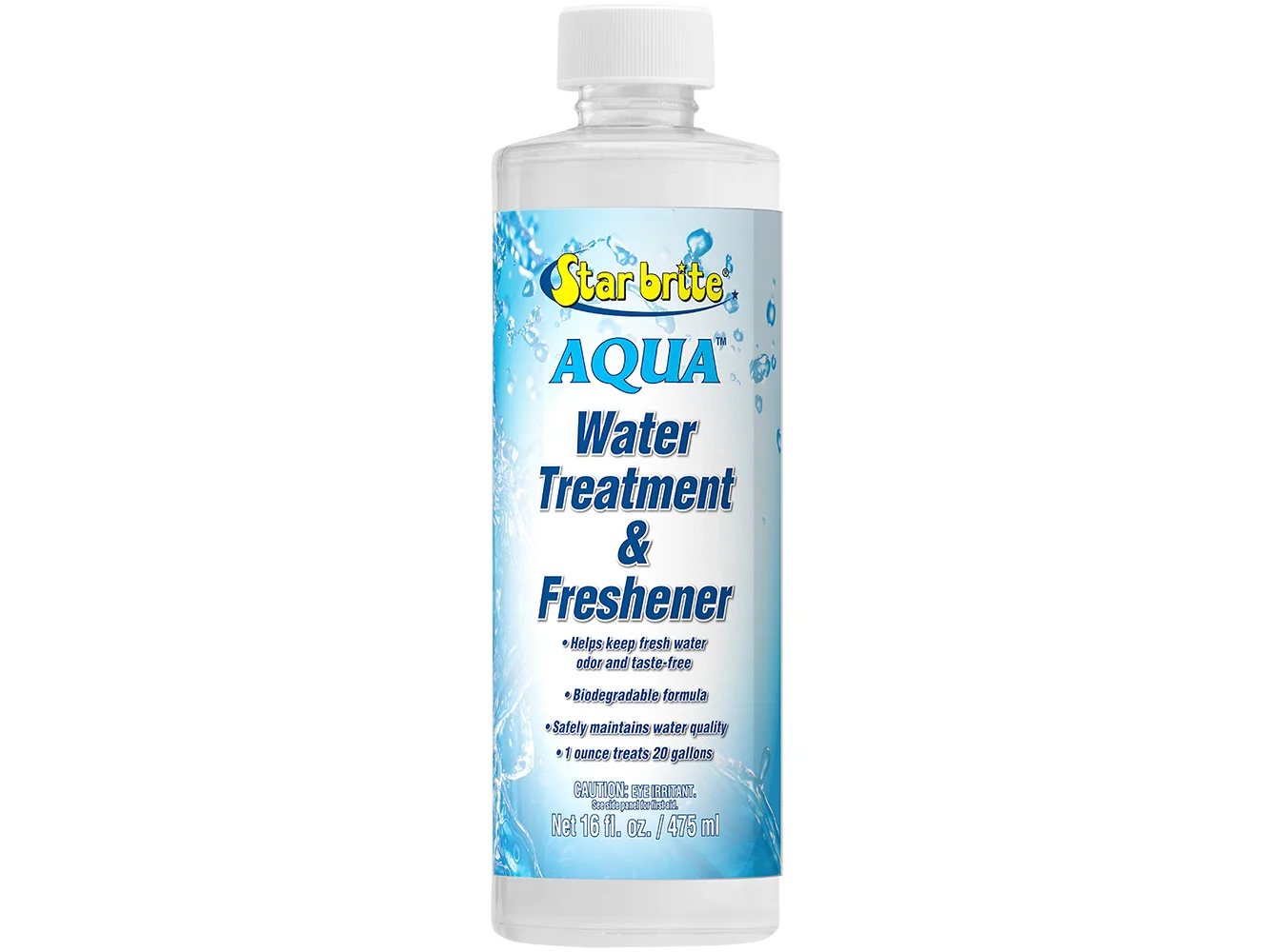 Before adding fresh water to the tank, add 1 fluid ounce of AQUA Water Treatment & Freshener for every 20 gallons of potable water to be treated, then fill the tank. Use as often as needed. For best results, use AQUA Water Treatment & Freshener each time you add water to the tank to maintain water quality and fresh taste. If the water has an unpleasant odor or taste, use AQUA Water Shock to help restore water quality.