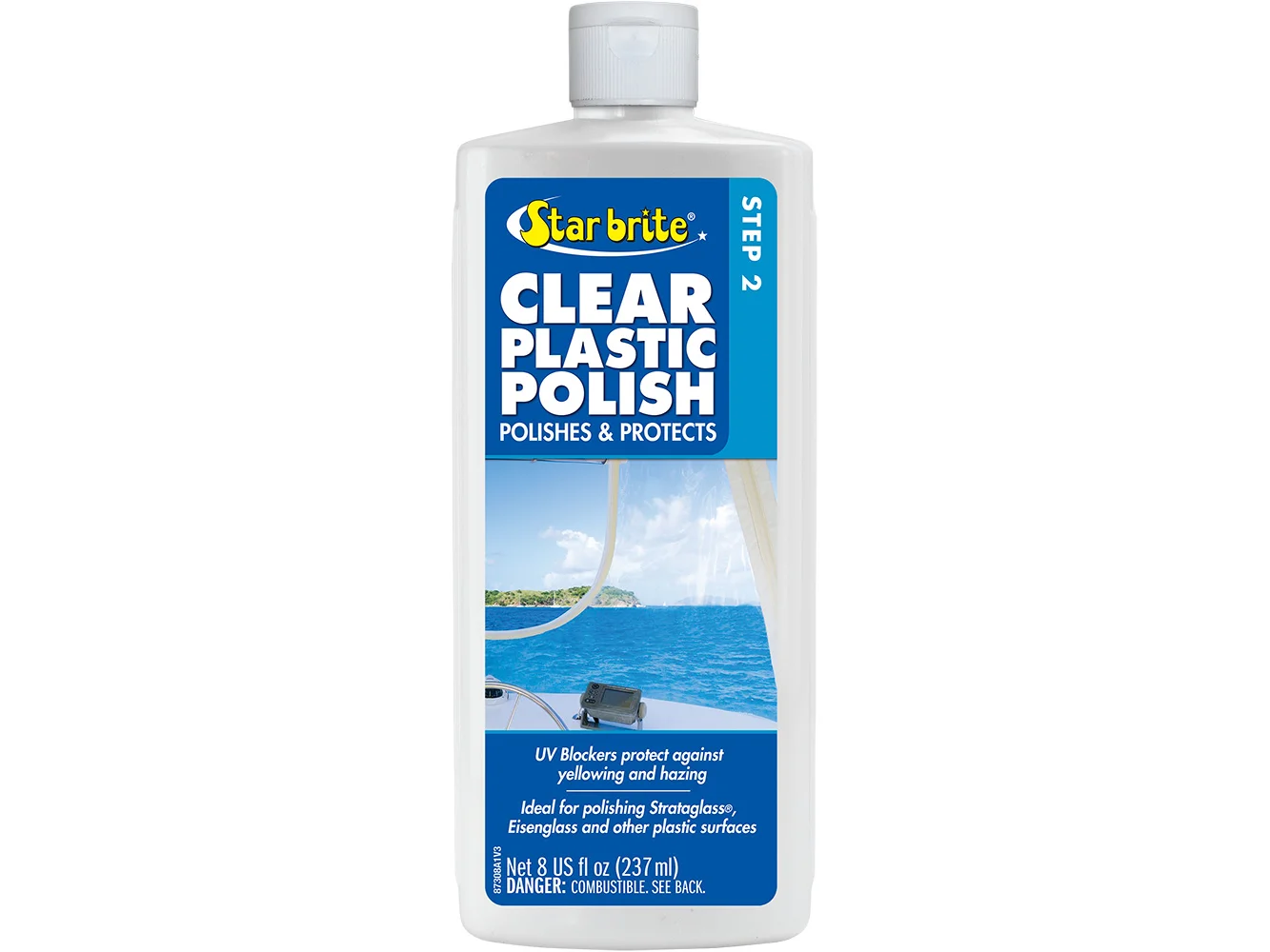 Seals and protects restored plastic surfaces with UV protection to prevent yellowing. Designed for acrylic, polycarbonate, marine enclosures, and vehicle headlamps. The durable finish enhances appearance while protecting against staining and sun damage.