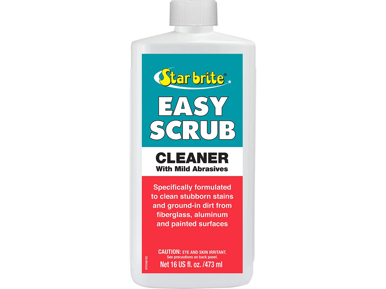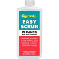 Cleans ground-in dirt and stains from fiberglass, metal, plastic, mica, tile, and painted surfaces. Combines superfine abrasives and chelating agents to lift and remove stains, grime, and oxidation without scratching. This cleaner works on the really tough stains that others can’t remove! Ideal for cleaning stainless sinks, stovetops, railings, towers, countertops, shower stalls, swim platforms, coolers, cutting boards, rub rails, and more. Shake well before using. Pour a small amount onto a sponge or cloth and apply in a firm, overlapping, circular motion. Rinse or wipe off with a clean cloth. Stubborn stains may require a second application and light scrubbing with a Star brite fine scrub pad. Note: Do not use on plastic surfaces. To keep newly-cleaned fiberglass or polished metal looking its best while repelling stains and dirt, apply a protective coating of Star brite Marine Polish.