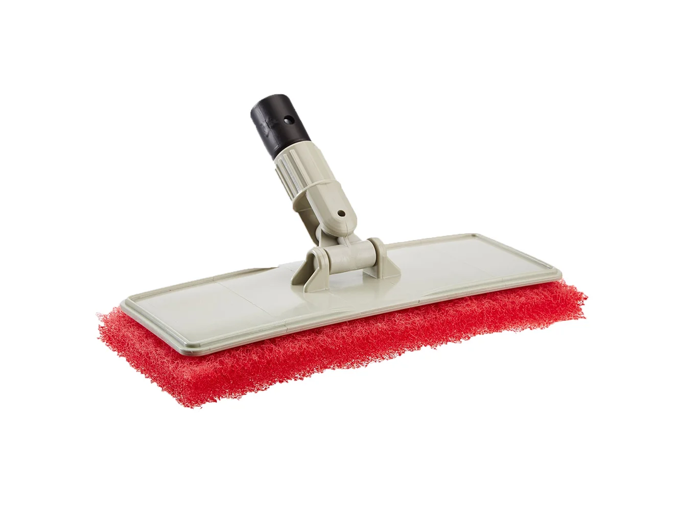 Connect the flexible head to your choice of Star brite extension pole, attach the medium red pad, apply your preferred cleaning solution, and scrub the surface in broad strokes Rinse and simply air dry the pad after use.