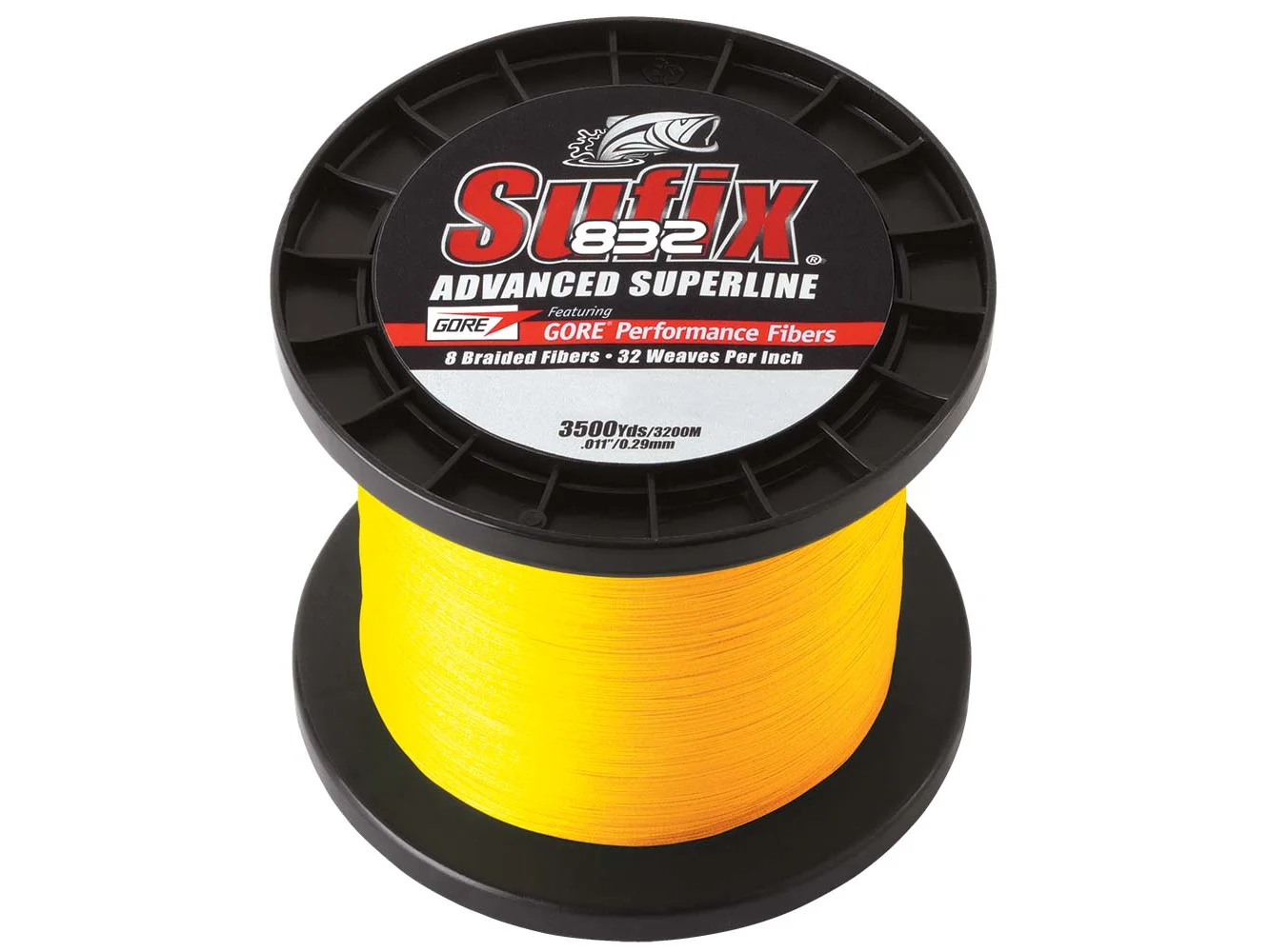 Sufix® 832® Advanced Superline® is the strongest, most durable small diameter braid on the market. R8 Precision Braiding and fiber technology provide superior strength, roundness, and line consistency. 832 Advanced Superline has 8 fibers (7 HMPE fibers plus 1 GORE® Performance Fiber) and 32 weaves (pics) per inch. GORE® Performance Fibers improve abrasion resistance, increase casting distance & accuracy and reduce line vibration. HMPE fibers provide high strength & sensitivity, hydrophobic water-repellent protection, and small diameter.