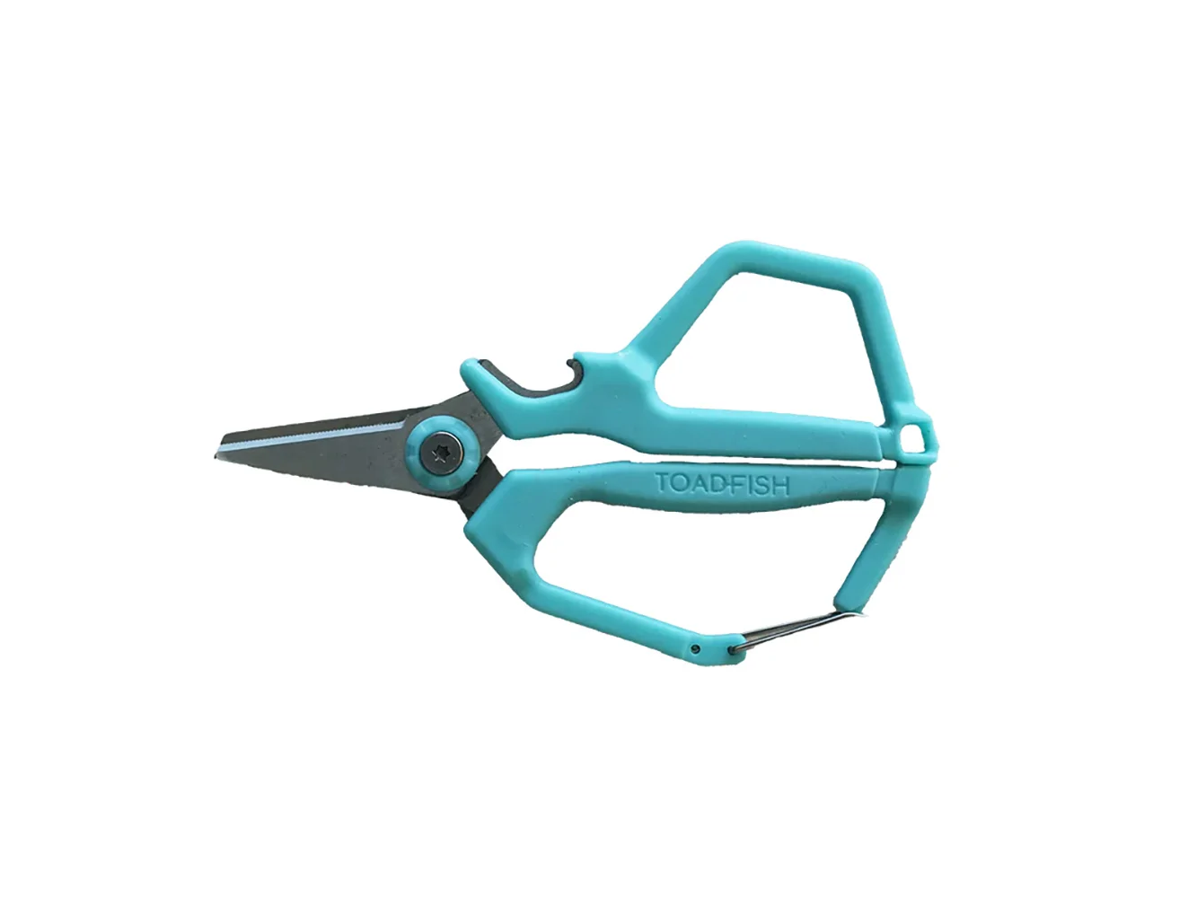 This multi-use Toadfish fishing scissor is designed to be a go-to companion for quick rigging with braid, mono, or fluoro. Featuring corrosion-resistant stainless blades with micro-serrated edges. Includes a built-in carabiner for quick storage, a hole through for lanyard attachment, and a built-in bottle opener.