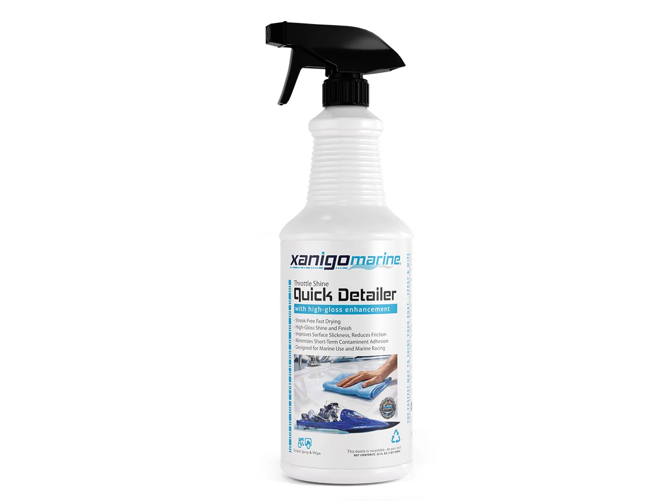 Your boat shouldn’t just be clean. It should look fast sitting still. Throttle Shine Quick Detailer is a high-performance marine detail spray designed to remove light contamination while restoring deep gloss and creating an ultra-slick surface feel. Perfect for a quick wipe-down at the dock, before guests arrive, or after a day on the water.